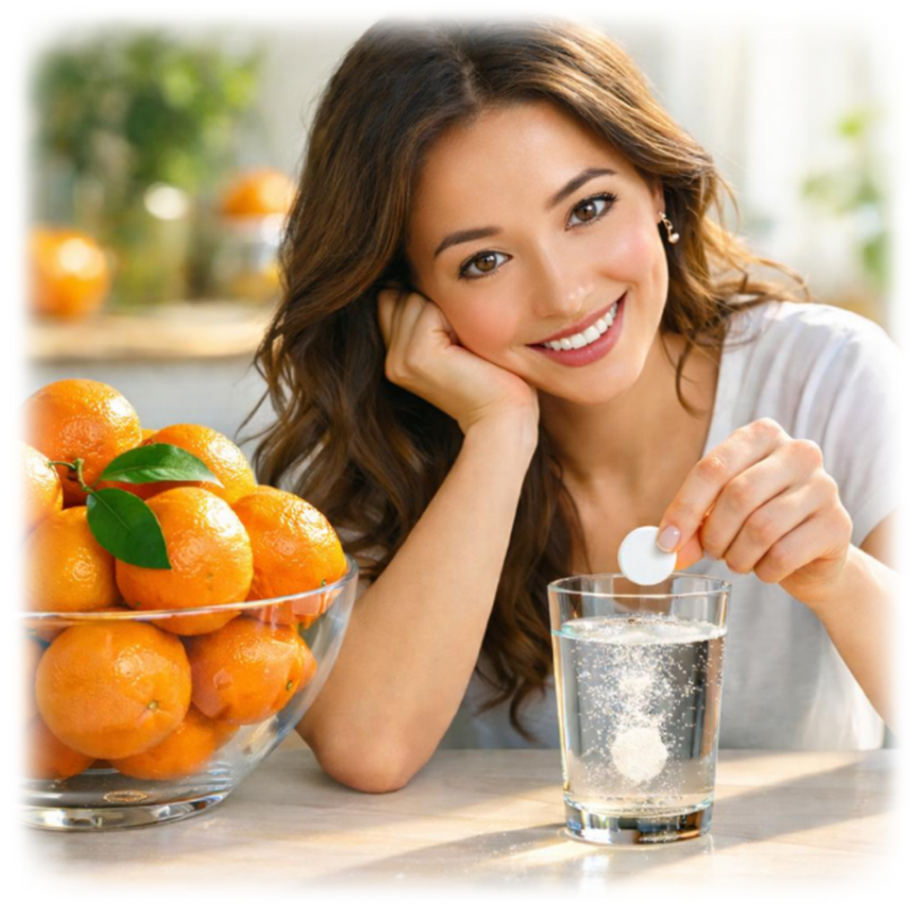 Комбинированный препарат в виде шипучих таблеток, содержащих 10 мг цинка и 1000 мг аскорбиновой кислоты